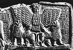 В шумеро-аккадской мифологии огромная птица божественного происхождения, представляемая как орел с львиной головой (позднее, приблизительно с XIV века до н.э. — в виде гигантского орла).