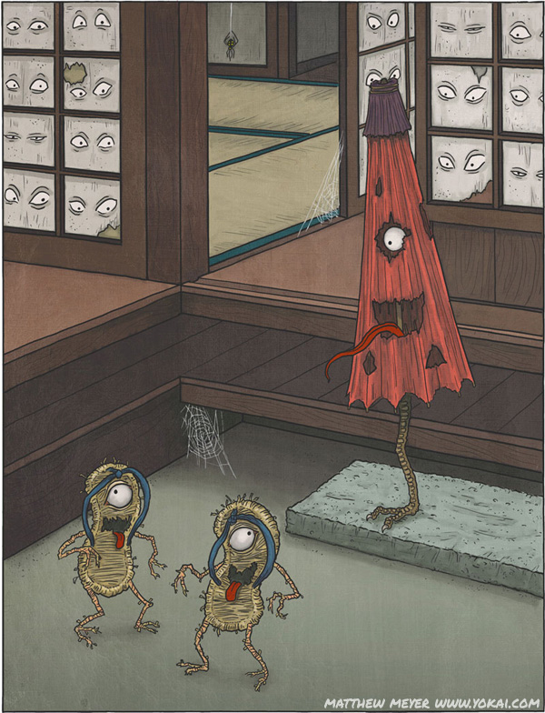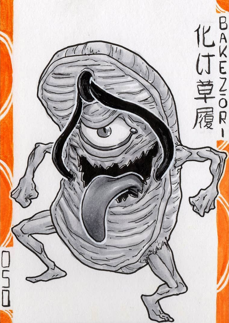 А вот японцы — думают. Причем не просто думают, а натурально уверены в том, что их японская национальная обувь может иметь характер, и характер весьма шаловливый. Вот только проявляют его сугубо патриархи обувного рода, "прожившие" под сто лет и накопившие стопиццот единиц маны. Особенно бурно этот свой внутренний характер отчего-то склонны проявлять не деревянные гэта, а соломенные сандалии-дзори — такие какбэ шлепанцы или типа сланцы. И вот если такой вот дзори будет на много-много лет забыт под циновками или в какой кладовой, то станет он одним из цукумогами — бакэ-дзори (化け草履). "Дзори", понятно, сандаль, а "бакэ" — сокращение от слова "обакэ" (お化け), которым японцы называют "то, что меняется", то есть всякие волшебные вещи. В общем, практически оживет сандаль. Еще говорят, что он не просто так оживает, в для защиты своих обувных собратьев в тех домах, где об обуви плохо заботятся.