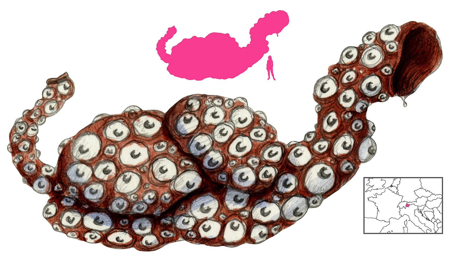 The Lüschersee, a small Swiss alpine lake nestled in the heather-covered hills of Graubünden, seems tranquil enough on the surface. Yet it is said that the lake’s waters reach down to the center of the Earth, where eternal fires rage. This is the home of the Butatsch Cun Ilgs, the “Cow’s Stomach”.