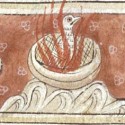 Необычное и довольно редкое изображение бонакона. Как видно, он изображён без своего знаменитого оружия - струи обжигающего навоза. Рога, вопреки тексту а обычной традиции, у бонакона закручены не внутрь. Также на иллюстрации отсутствуют охотники, что тоже нетипично. Рептилиобразное существо в воде не поддаётся надёжно идентификации. Возможно, что это иллюстрация вообще другого существа, помещённая в статью о бонаконе случайно.