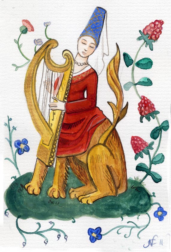 "На байонском гобелене, запечатлевшем сцены нормандского завоевания Англии (XI век н.э.)... в эпизоде "Гарольд спасает двоих солдат" изображен кентавроид с львиными лапами. Каменное изваяние еще одного леонтокентавра можно увидеть в Вестминстерском аббатстве в Лондоне." (248)