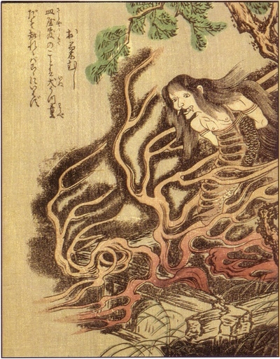 И он поверил ей. Разгневанный Гэмпа связал руки Кику за спиной и бросил ее в родник в саду. Когда мать Кику услышала о смерти своей дочери, она была так огорчена, что бросилась в тот же самый родник и умерла.