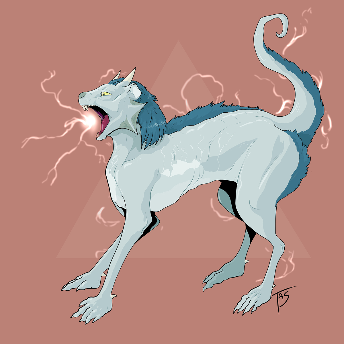 According to Japanese folklore, a raijū is the embodiment of lightning into an animal form. They had long, sharp claws and ferocious faces. Generally, they were thought to look like wolves, dogs, tanuki, or even weasels or cats. Far more fanciful forms existed too. Sometimes raijū were said to look like little dogs, but with four rear legs and two tails. Sometimes they were said to look like insects or crustaceans. Others looked like miniature dragons. Even more exotic raijū were said to be chimerical monsters composed of many different animals.