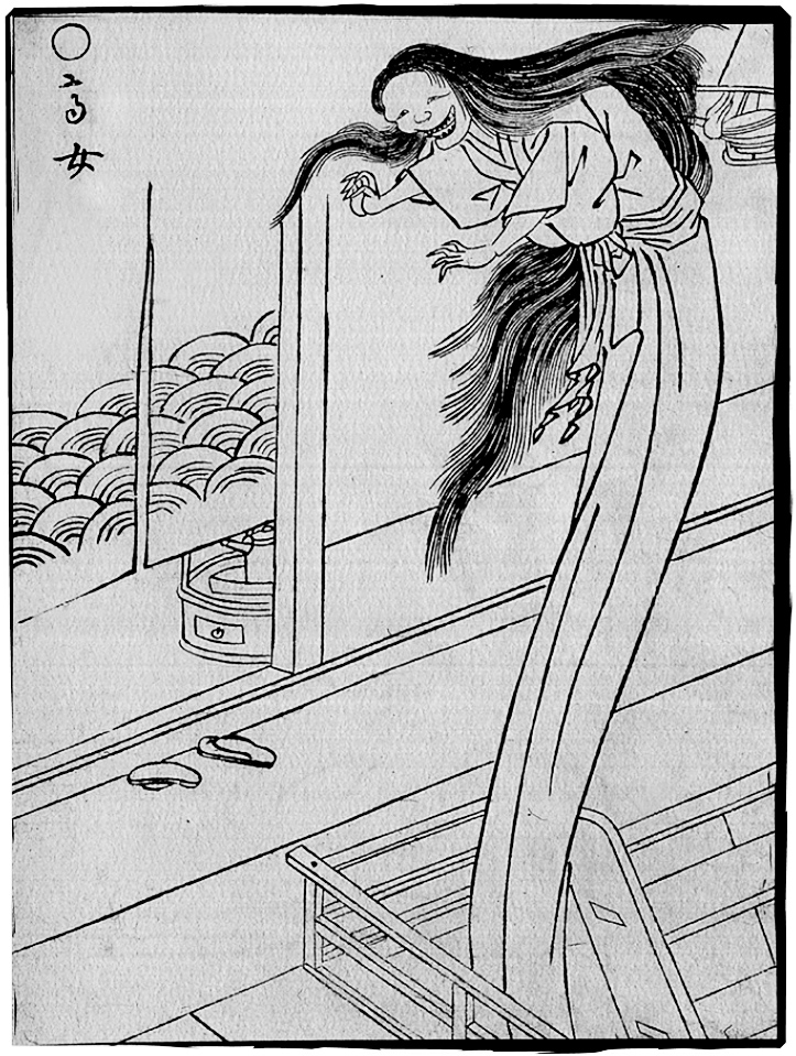 Taka onna were originally ordinary women who were too unattractive to marry (or to find work in the red light districts which they haunt). Through jealousy, they became twisted and corrupted, and transformed into ugly, malicious monsters who prey on others’ sexual energy.